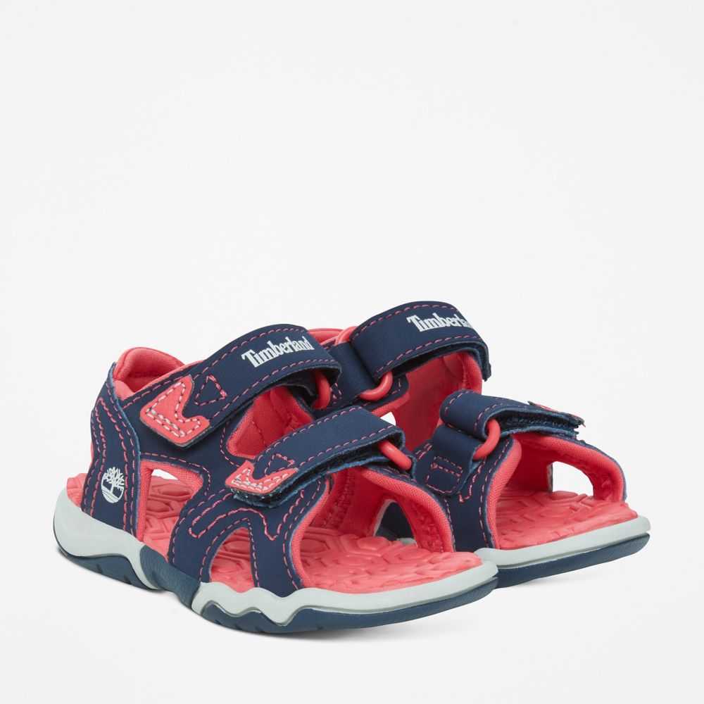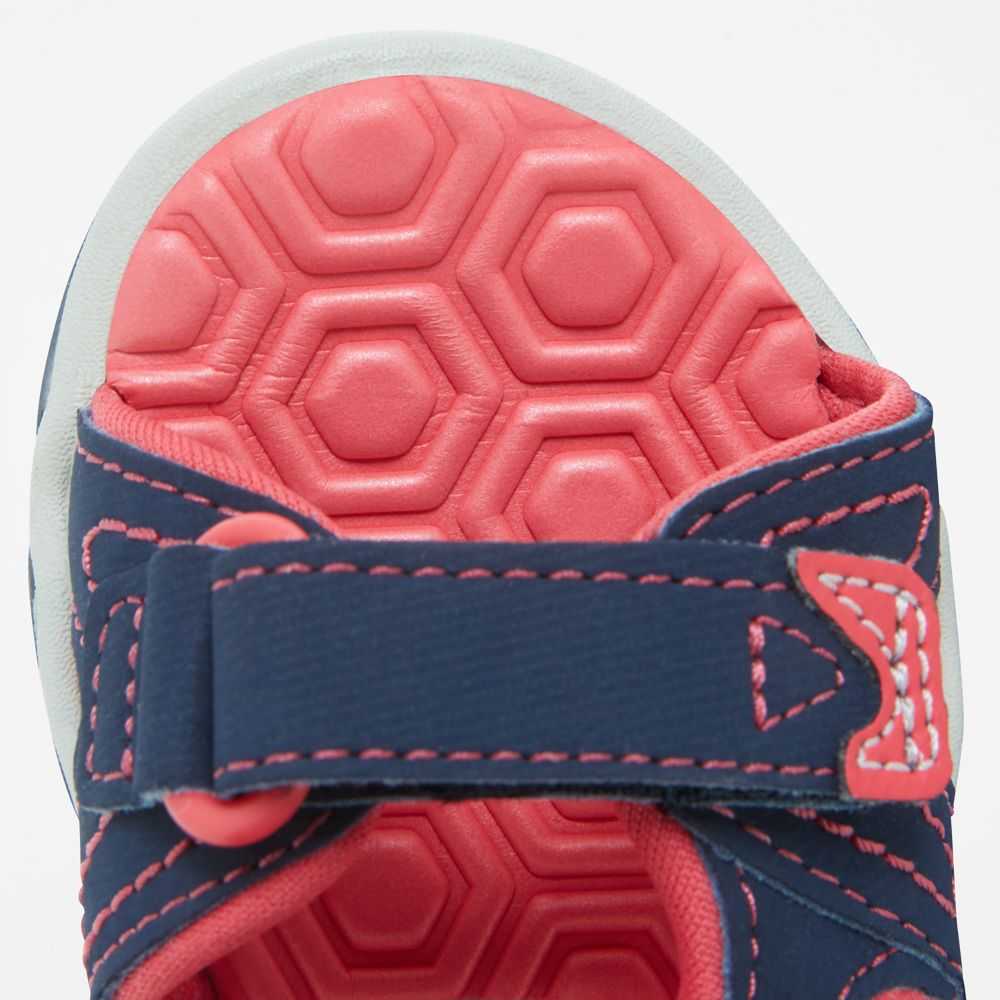 This lightweight 2-strap kids' sandal is made with water-friendly synthetic leather and features a hook-and-loop closure for convenience and ease,and an eco-conscious fabric lining.