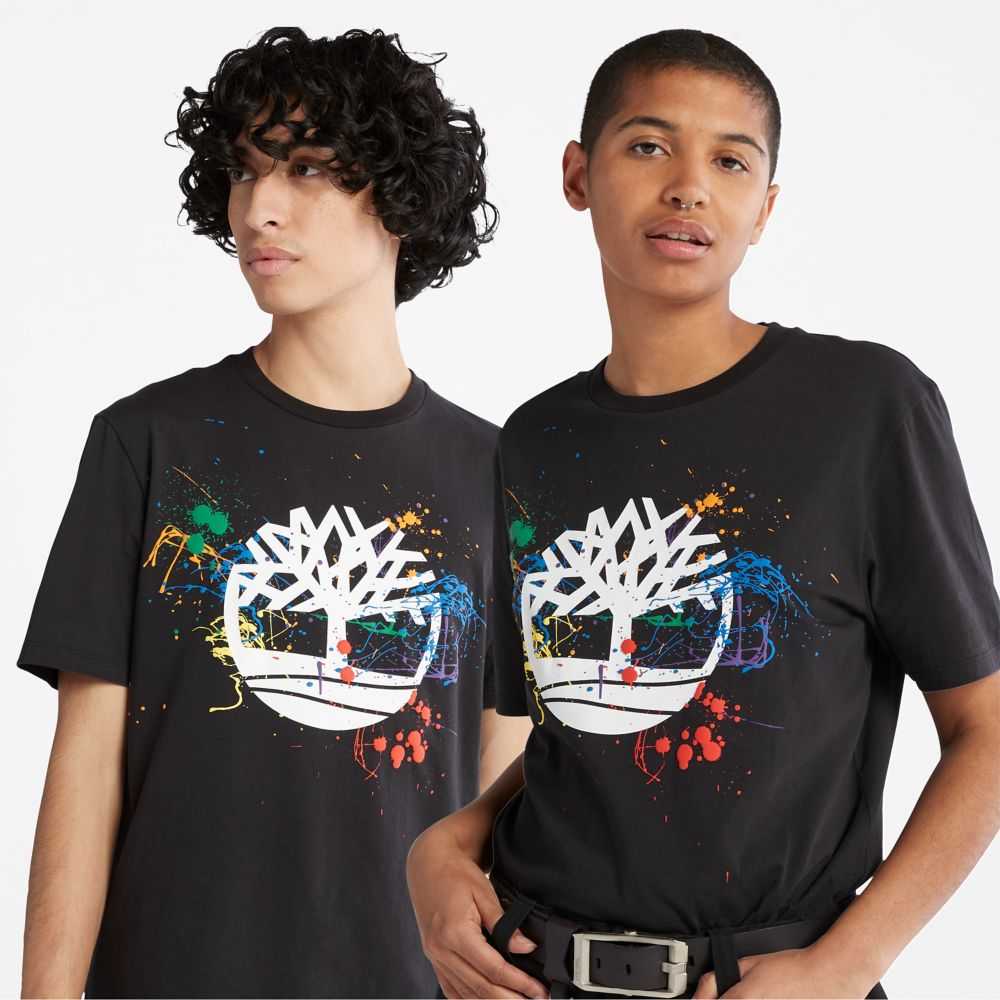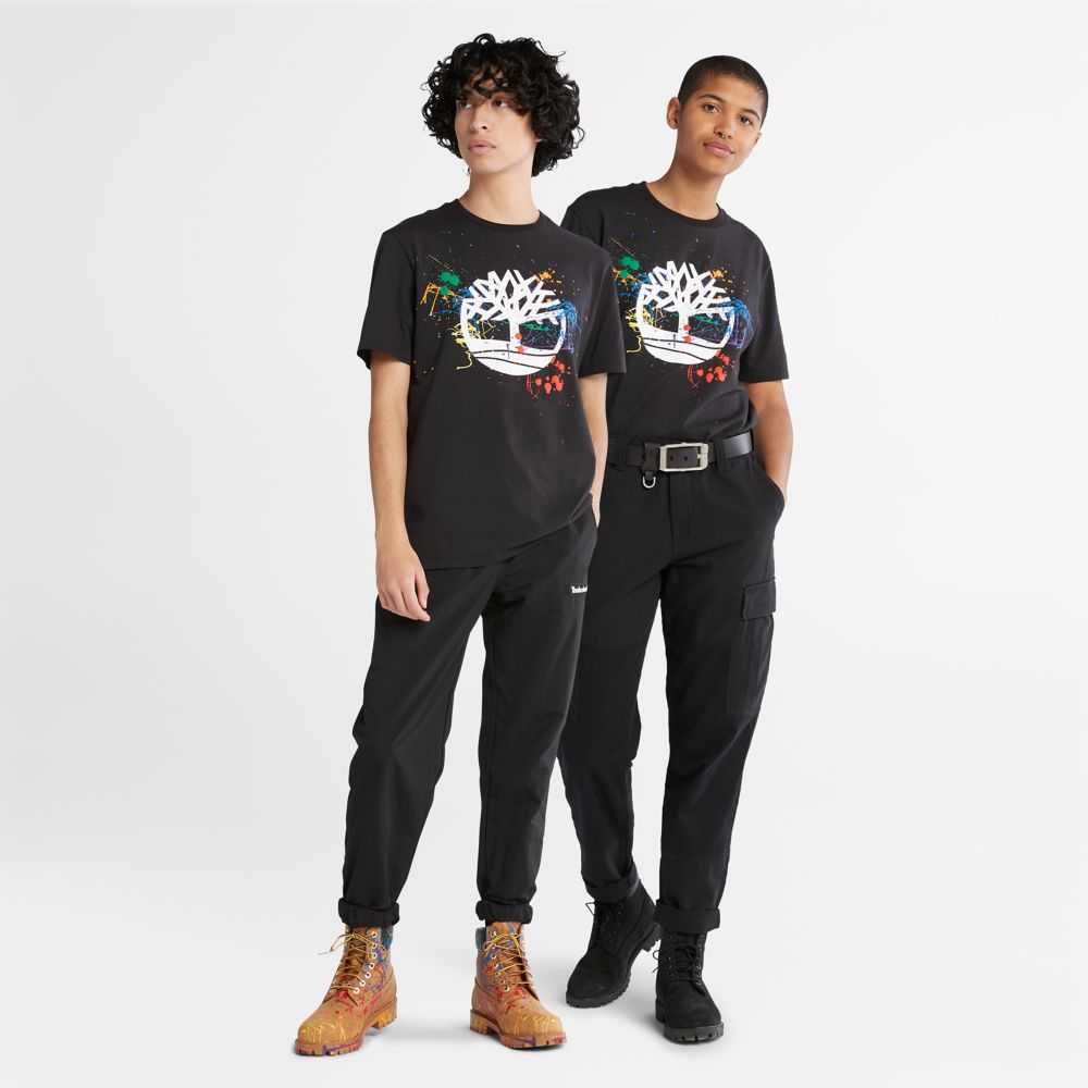 Embrace creative expression with this splatter paint logo tee,made entirely with cotton grown without harmful chemicals or pesticides.