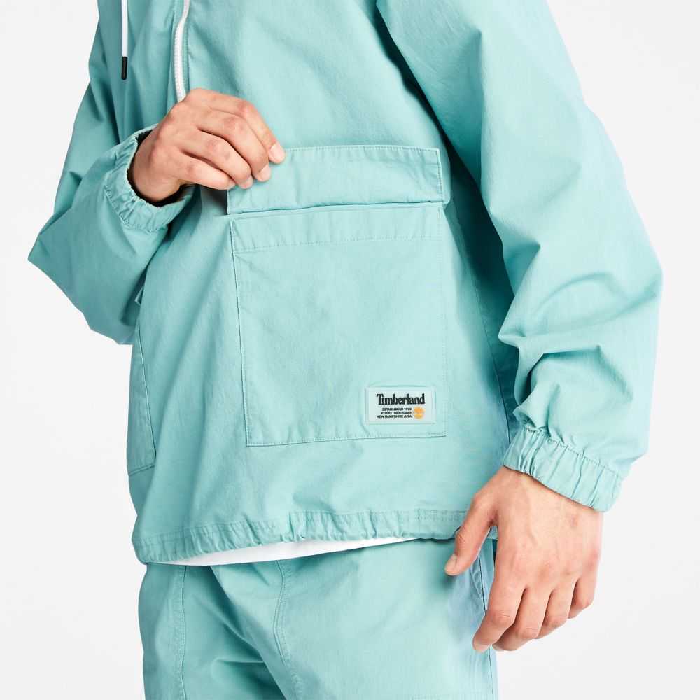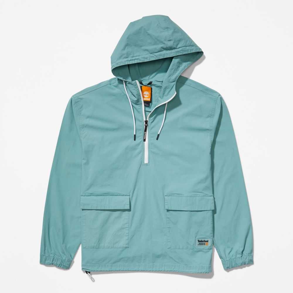 Worksite-inspired design at the edge of utility.Made with a touch of stretch for comfort,this men's anorak features a half-zip opening,adjustable hood,cargo front pockets,and fabric containing 98% cotton grown without harmful chemicals or pesticides.