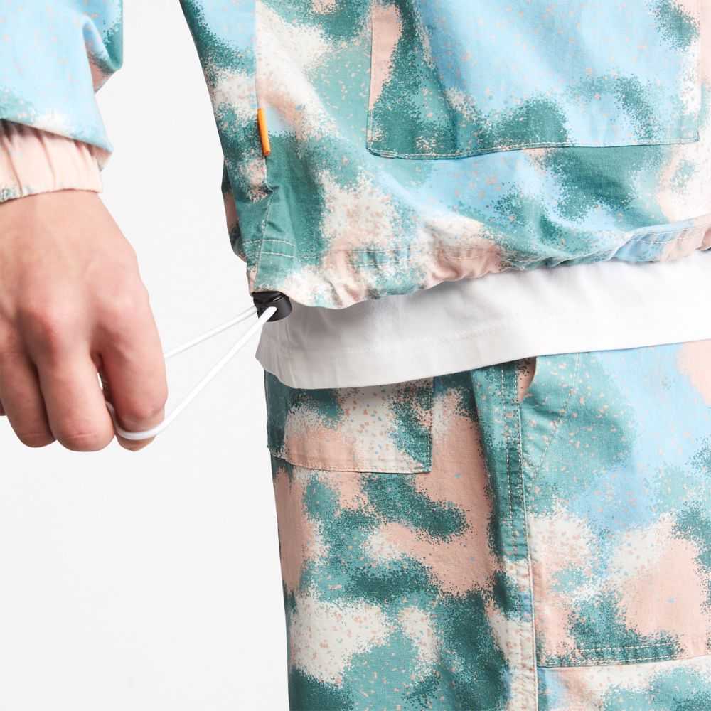Worksite-inspired design at the edge of utility.Made with a touch of stretch for comfort,this men's anorak features a distinctive allover print,a half-zip opening,adjustable hood,cargo front pockets,and fabric containing 98% cotton grown without harmful chemicals or pesticides.